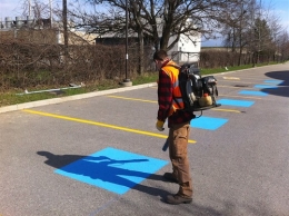 Delivering Asphalt Stencil Painting which may feature No Parking Areas pertaining to properties such as retail stores, company complexes, resorts, retirement homes as well as condo properties requiring Asphalt Stencil Painting